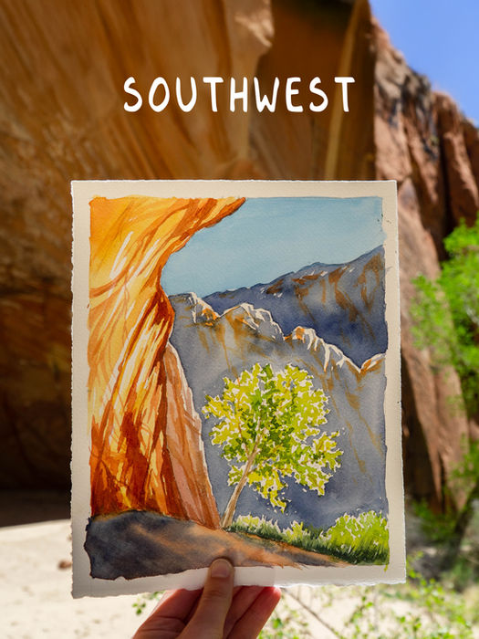 I am so excited to help demystify this medium and share with you the tools to paint many different landscapes from icefields to snowy peaks and desert arches.